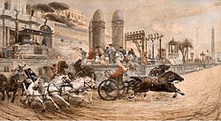 В Древней Греции колесницы с лошадьми использовались в основном для спортивных соревнований. В Древнем Риме колесница, запряжённая двумя лошадьми, называлась «biga», три лошади — «triga», четыре лошади — «quadriga». Особенно важными были торжественные колесницы, предназначенные для триумфальных парадов императоров, в которых могли быть запряжены до восьми пар лошадей[1].