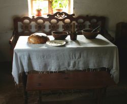 В Северной России пеклась козулька, имеющая вид или козла на четырёх ножках (Владимирская губерния), или других животных, или птицы (Олонецкая губерния). Её сберегали из года в год, чтобы скотина ходила летом домой и плодилась, а также, чтобы её любил покровитель дома — домовой. На Украине, России и Белоруссии в «свят вечир», то есть в канун Рождества, вечерний ужин состоял главным образом, из кутьи (ячневая, изредка пшеничная) и узвара (отвар сушёных плодов). Эта еда считается ритуальной, и в частности имеет поминальный характер: кутью оставляют на ночь для умерших родственников; по народному верованию, на стене бывают видны смутные отражения маленьких, как куклы, людей, спускающихся к столу[20].