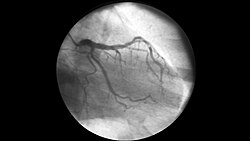Коронарографи́я (лат. coronography — «рисование сосудов сердца»[1], или лат. coronarius — «относящийся к венку, напоминающий венок»[2] и лат. -graphia — «запись»)[3] — рентгеноконтрастное исследование, которое считается «золотым стандартом» диагностики ишемической болезни сердца (ИБС). Оно позволяет с максимальной точностью увидеть состояние коронарных артерий: где именно, насколько сильно и в каком виде они сужены или закупорены. Процедура даёт врачу-кардиологу полную картину и помогает сразу принять решение о тактике лечения.