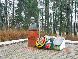- Справа от стелы ( посёлок Красносельское Выборгского района) установлен бюст Кучерявого Виктора Дмитриевича