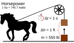 Лошади́ная си́ла (русское обозначение: л. с.; английское: hp; немецкое: PS; французское: CV) — внесистемная единица измерения мощности, не входящая в Международную систему единиц (СИ), но получившая историческое распространение. В первую очередь, для характеристики мощности двигателей, особенно двигателей внутреннего сгорания[1]. Несмотря на то, что официально установленной единицей мощности в СИ является ватт, лошадиная сила продолжает активно использоваться в ряде стран, включая Россию, для целей налогообложения транспортных средств и их страхования. Также термин используется в бытовом общении при оценке энерговооружённости автомобилей, мотоциклов, тракторной и иной техники[2][3][4].