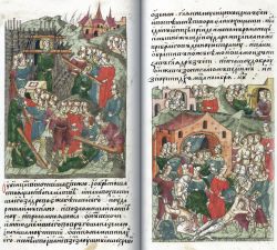 | Михаил Ярославич и его мать Ксения предстоят перед Христом. Тверская миниатюра начала XIV века | |
