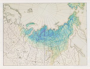Распространена в большем количестве областей средней полосы России. Это Малоземельская и Большеземельская тундры, Средне-Сибирское плоскогорье, Забайкалье и южная часть центральной Якутии[2].