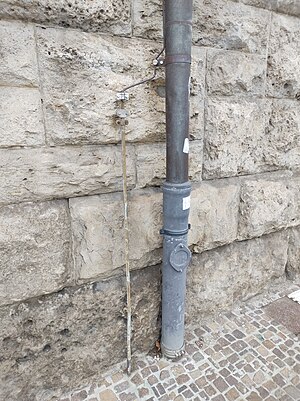 Так, согласно стандартам, у каждого громоотвода должно быть не менее двух токоотводов (спусков) для надёжного отвода тока — они обычно размещаются с разных сторон здания, по возможности ближе к углам, чтобы ток разделялся на несколько параллельных путей и снижался риск опасного искрения[6][7].