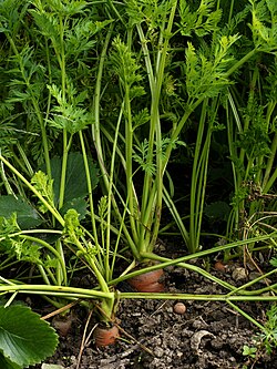 Морко́вь посевна́я (лат. Daucus carota) — двулетнее травянистое растение из семейства Зонтичные (лат. Apiaceae). Это одна из наиболее популярных овощных культур, выращиваемых во всём мире за сочные и питательные корнеплоды. Морковь ценится как источник пищевых волокон, витаминов, а также различных минеральных веществ[2].