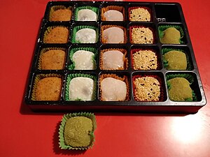 Мо́ти (яп. 餅) — это традиционное японское пирожное, имеющее форму небольшого шарика или лепёшки приготовленной из рисовой муки с начинкой внутри[1].
