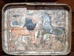 Интерес вызывает сундук-погребец для хранения и перевозки вина начала XVIII века, окованный железом, и украшенный «антиалкогольными» лубочными росписями и надписями старинным уставом[7]. Нравоучительная картинка, осуждающая чрезмерное питие, на внутренней стороне сундука выполнена в иконописной манере[6].