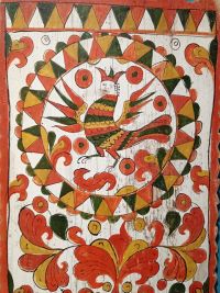 Подписной короб городецкой росписи имеет уникальную особенность — в его орнамент вмонтирована репродукция царской семьи, датируемая 1903—1904 годами (ещё без изображения цесаревича Алексея)[1]. Полностью расписные грабли в рабочем состоянии с обозначением, кому они принадлежали и год — 1928[5].