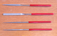 Существуют напильники, вместо насечки покрытые алмазным порошком. Применяются они для обработки закалённой стали, стекла, керамики. При работе их необходимо обильно смачивать водой.