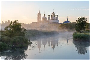 - Надвратная Спасо-Преображенская церковь, или надвратный храм, входит в архитектурный ансамбль монастыря и расположена на территории самого монастыря[23].