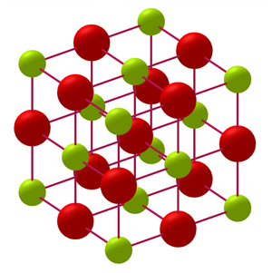 Оксид кальция образует кубическую гранецентрированную кристаллическую решётку (тип хлорида натрия, пространственная группа Fm3m). В структуре каждый ион кальция (Ca²⁺) окружён шестью ионами кислорода (O²⁻), и наоборот[14][15]. Параметры решётки[16]: