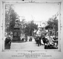 После окончания литургии и панихиды в соборе дворянского собрания прошло заседание комитета, курировавшего создание памятника и приём гостей. В торжественном мероприятии приняли участие композиторы Игорь Фёдорович Стравинский, Пётр Ильич Чайковский, Александр Константинович Глазунов, Сергей Иванович Танеев, Антон Степанович Аренский и руководитель «Могучей кучки» Милий Алексеевич Балакирев[5]. Князь Георгий Васильевич Оболенский вручил Милию Балакиреву, директору Петербургской певческой капеллы, дирижёрский жезл. Комитет и гости вышли к памятнику, задрапированному полотном. На деревянной лестнице разместился хор музыки Императорского московского Большого театра и более 250 певчих. Дирижировал хором М. А. Балакирев.