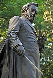 | Профиль М. И. Глинки, смотрящий влево | Изображение | Вид памятника М. И. Глинке, воздвигнутого в Смоленске в парке Бло́нье. |