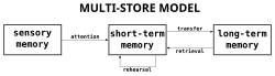 В качестве основного метода исследования памяти когнитивисты использовали моделирование, объясняя функционирование мнемических процессов через структурные и уровневые модели. В теориях двойственности памяти лежит модель линейной переработки информации, структурными компонентами которой являются блоки сенсорной, кратковременной (оперативной) и долговременной памяти[1][8]: