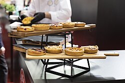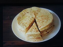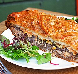 Пиро́г — изделие из раскатанного теста с начинкой, выпекаемое в духовке или на открытом огне; распространённое блюдо в кулинарии многих народов мира. Отличается разнообразием форм, видов теста, начинок и способов приготовления. Пироги могут быть как сладкими, так и несладкими, подаваться как самостоятельное блюдо, закуска, десерт или элемент праздничного застолья[1].