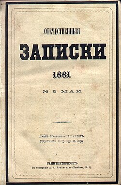- ↑ Правительственное сообщение о закрытии Отечественных записок. М.Е. Салтыков-Щедрин Собр. соч. в 20 тт. Т. 20 (20 апреля 1884). Дата обращения: 7 декабря 2024.