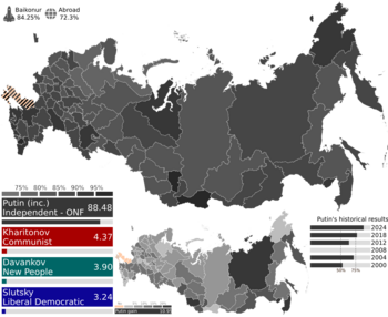 - ↑ Предварительные итоги голосования на выборах Президента Российской Федерации 17 марта 2024 года. ЦИК.