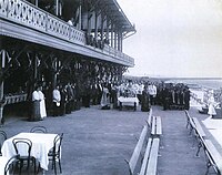 В 1890-х годах власти ОВД выделили на территории Балабановской рощи земельный участок под скаковой ипподром. Усилиями созданного Ростовско-Нахичеванского скакового общества ипподром был быстро обустроен: возведены двухэтажное здание для нужд общества, трибуна, несколько конюшен, а сама территория была обнесена забором. Первые скачки здесь состоялись в 1894 году[2]. В самом же Ростове-на-Дону скаковой ипподром был открыт в 1902 году[4]. А годом ранее Ростовско-Нахичеванского скаковое общество, по соглашению с Рысистым обществом о совместной деятельности, приняло решение о переносе оборудования с их участка на новый ипподром[2]. К 1913 году ранее построенные сооружения Ростовского ипподрома обветшали и его руководством был заключен договор на разработку новых построек с новым для Ростова-на-Дону архитектором Л. Ф. Эбергом[3].