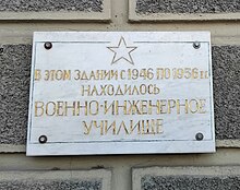 Здание Военно-дорожного училища (на памятной доске указано Военно-инженерное училище) было построено в 1948 году, но учёба в нём проходила в период с 1946 по 1956 год. Внесено в государственный реестр памятников истории и культуры народов РФ в качестве памятников регионального значения[2].