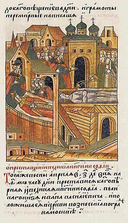 - ↑ Лицевой летописный свод. Учебник истории. Т. 3. — Общество любителей древней письменности, 2023. — С. 108.