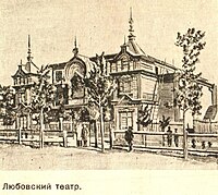 В 1895 году на месте первого в Ростове театра Садомцева некто Е. В. Любов построил деревянный театр на 1500 мест. Ничем выдающимся этот театр в истории города не отметился, кроме того факта, что 1896 году, в эпоху зарождения воздухоплавания, с площадки этого театра некий Андре поднялся на аэростате, который был отнесен к Батайску[10].