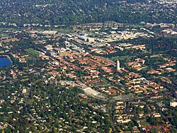 Университетский кампус, раскинувшийся близ города Пало–Альто в Санта–Кларе (Калифорния), является одним из крупнейших в США по размерам, насчитывая более 700 зданий и сооружений.