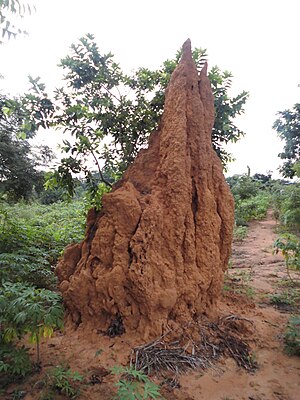 Эти социальные насекомые возводят свои жилища как в земле, так и на деревьях. Подземные термитники в лесных массивах невелики и значительно уступают по размерам известным строениям термитов в саваннах. Там термитники, сооружённые из песка, глины, обломков древесины и прочих материалов, достигают высоты пять метров, иногда — до 12 метров[2].