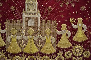 - ↑ 5,0 5,1 5,2 Круглова А. Р. Золотошвейное рукоделие великокняжеских и царских мастерских XV—XVI веков. — СПб.: «Коло», 2011. — 352 с. — ISBN 978-5-901841-75-4.