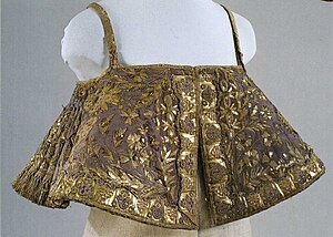 Развитие золотошвейного искусства после Смутного времени утратило эстетические традиции XV—XVI веков, подверглось западному влиянию. Секуляризация культуры, её обращение к чувственной красоте мира привело к тому, что золотное шитьё к концу XVII века стало лишь народным промыслом[5]. Вышивали золотом в мастерских Санкт-Петербурга и Москвы, а также в монастырях. Монахини Воскресенского монастыря Торжка в 1644 году вышили высокохудожественное покрывало для мощей святого Ефремия Новоторжского, находившихся в Борисоглебском монастыре[6]. Торжокских золотошвей иногда привлекали к работе над одеждой для царского двора. Наибольшую популярность приобрели вышитые шёлком и золотом сафьяновые сапоги из Торжка[2].