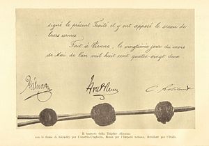 - ↑ 3,0 3,1 3,2 3,3 Тройственный союз 1882 // Большая российская энциклопедия : [в 35 т.] / гл. ред. Ю. С. Осипов. — М. : Большая российская энциклопедия, 2004—2017.