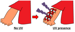 | Ультрафиолет B (UVB) | от 280 до 315 нанометров | Стимулирует выработку меланина, вызывая загар и являются основной причиной солнечных ожогов. Воздействуют на эпидермис (поверхностный слой кожи). Способствует синтезу витамина D в коже. При ожогах кожи лучи могут повреждать ДНК клеток и запускать развитие некоторых форм рака кожи.