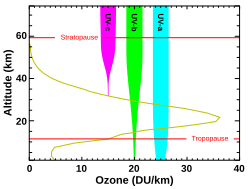 Частично фильтруется облаками и сдерживается озоновым слоем. Не проникает через оконное стекло. Интенсивность зависит от сезона, времени суток и географической широты. |