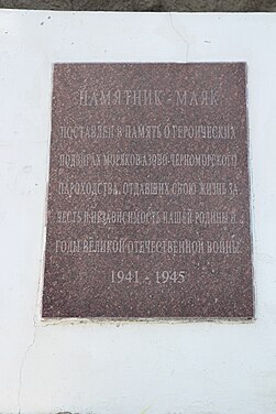 Памятник-маяк поставлен в память о героических подвигах моряков Азово-Черноморского пароходства, отдавших свою жизнь за честь и независимость нашей Родины в годы Великой Отечественной войны 1941—1945[15].