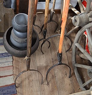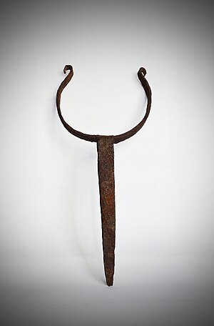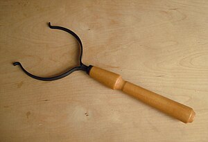 Железная пластина, изогнутая в виде полукруга, посредством втулки насаживалась на деревянный держак. Это позволяло безопасно манипулировать посудой в условиях высоких температур печного пространства, устанавливая и извлекать чугуны со щами, кашей или водой[3][4].