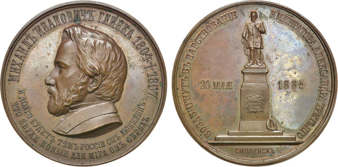 | Описание | Медаль 1885 года. В память открытия памятника М.И. Глинке в г. Смоленске |