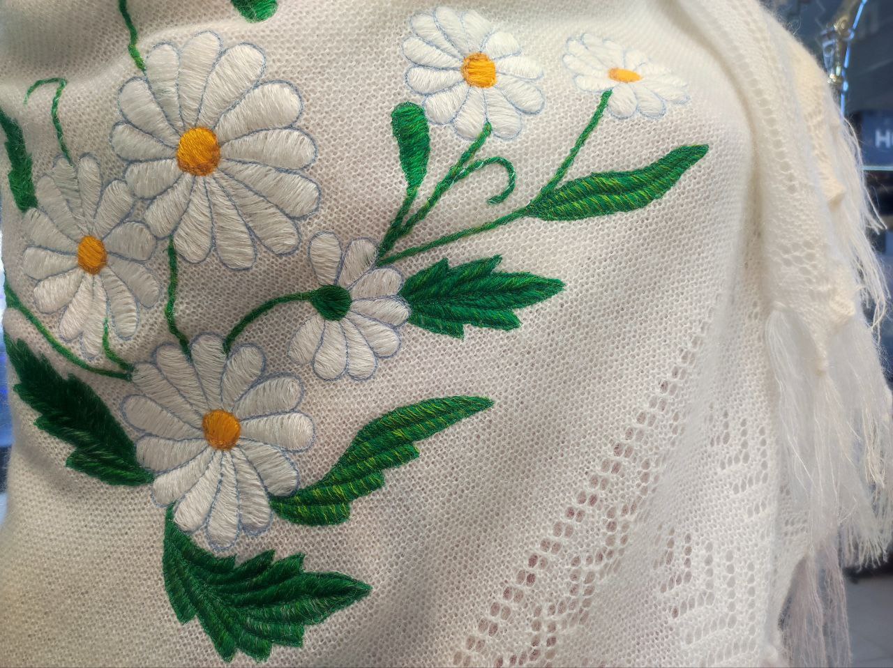 Файл:Оренбургская фабрика пуховых платков Шаль вышивка бахрома 2025.jpg