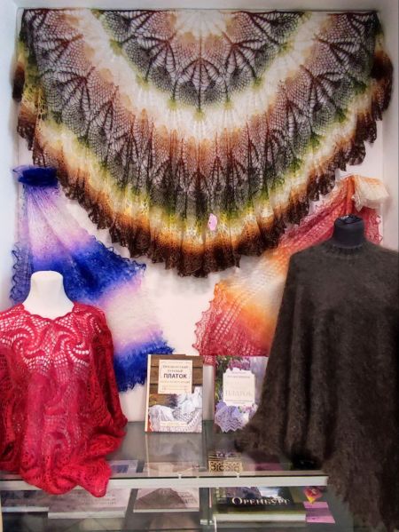 | Описание | Изделия ручной работы из Оренбургского пуха на витрине магазина | ||