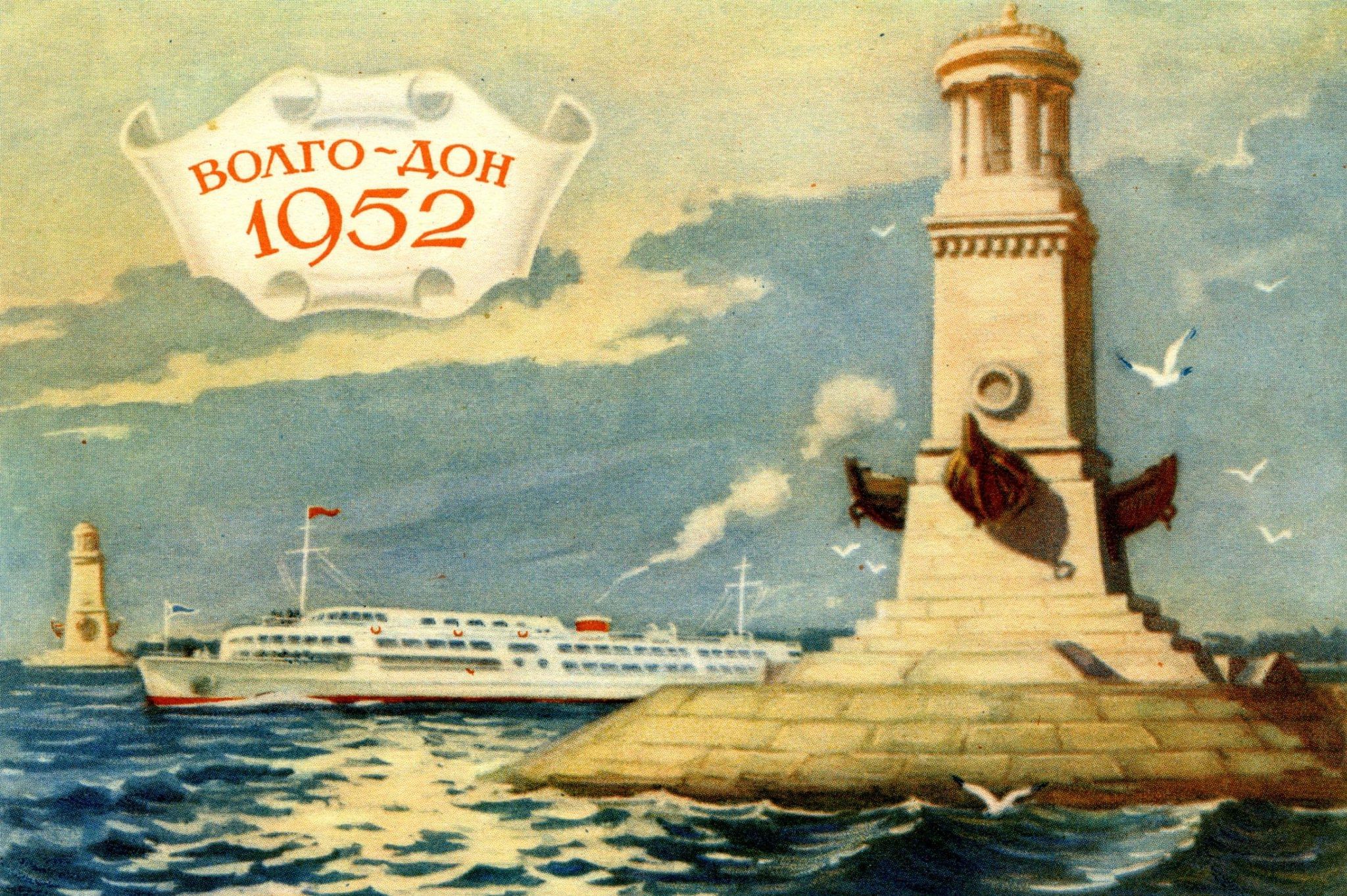 | Описание | Монумент «Соединение пяти морей» на почтовой открытке СССР "Волго-Донской судоходный канал им. В. И. Ленина", 1952 год. |