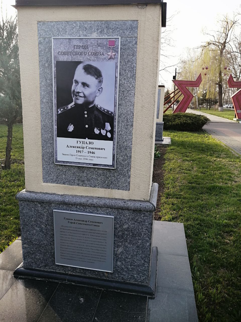 | Описание | Стела с фотографией Гуцало А.С. на Аллее Славы в Тихорецке | ||