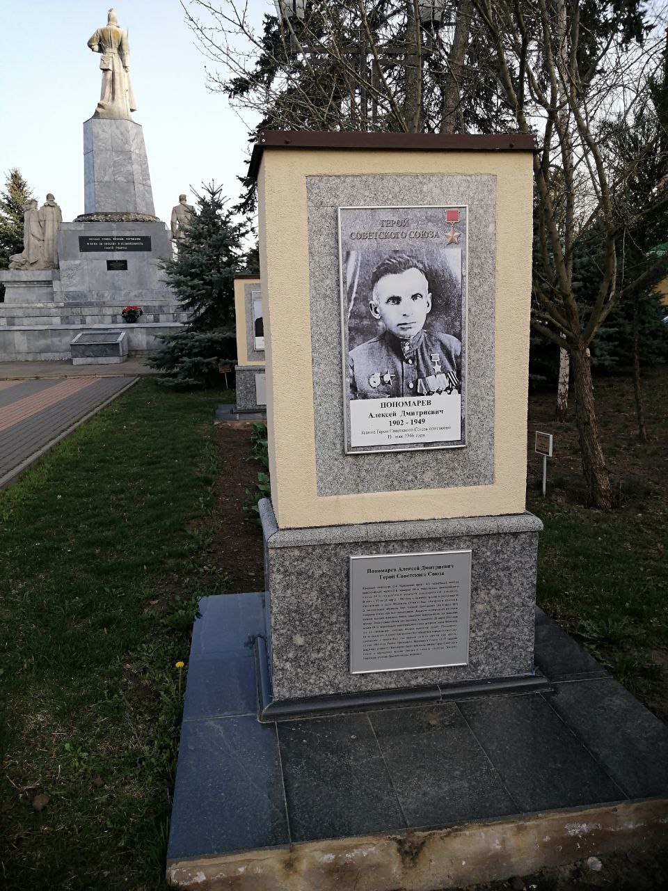 | Описание | Стела с фотографией Пономарёва А.Д. на Аллее Славы в Тихорецке | ||