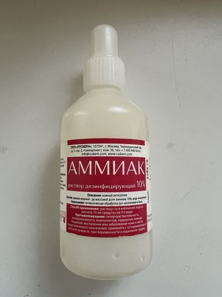 | Описание | 10% раствор аммиака (нашатырный спирт) | ||