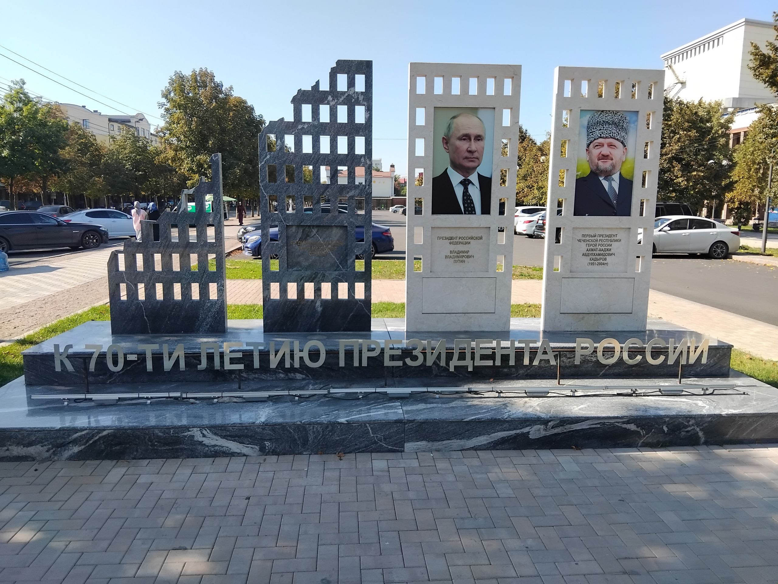 | Описание | Композиция (памятник) в Грозном, посвящённый 70-летию В. В. Путина. |