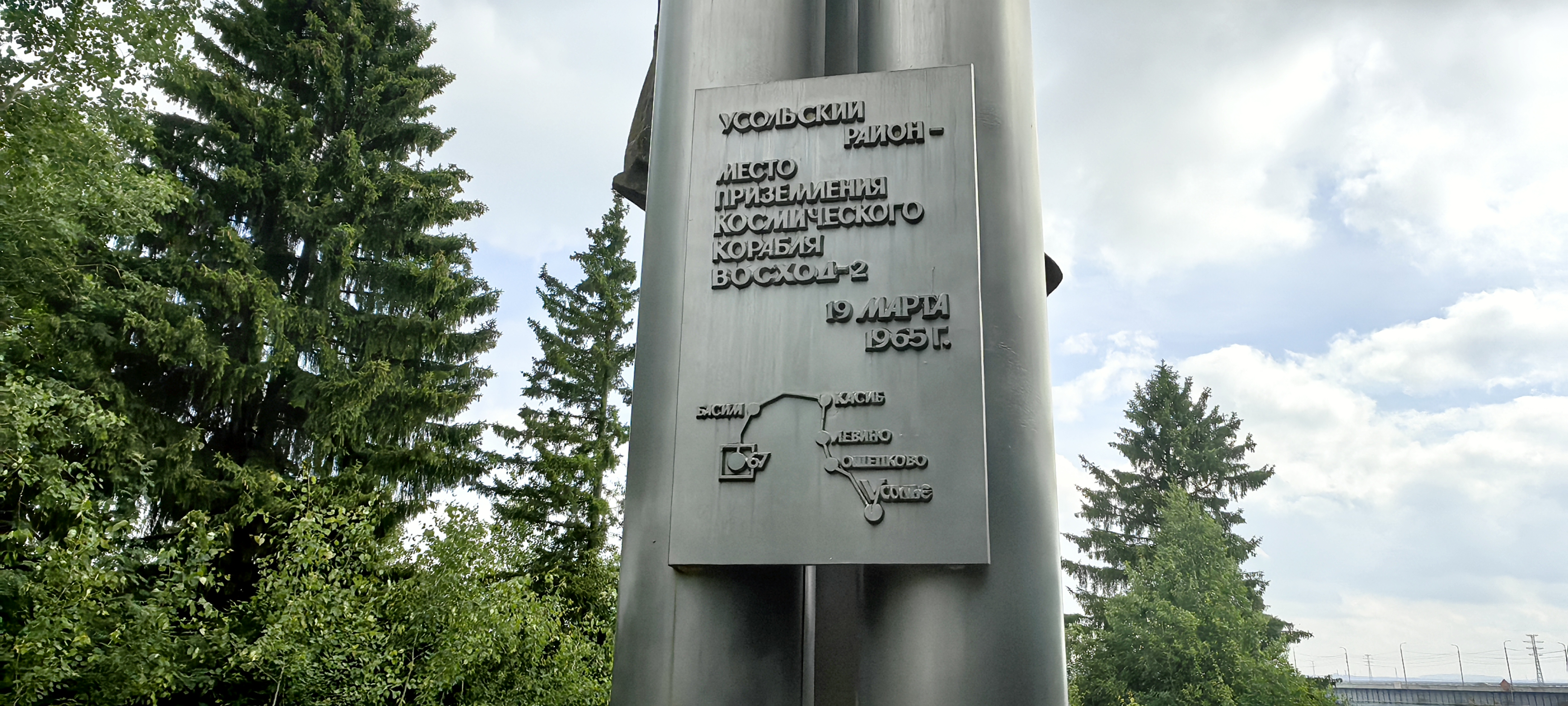 | Описание | Стела на месте приземления космического корабля «Восход-2» с Алексеем Леоновым и Павлом Беляевым при въезде в Усолье (Пермский край). Фото сделано в рамках вики-экспедиции по северо-востоку Пермского края, конец июня 2025. |