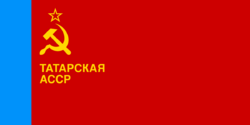 Флаг Татарской Социалистической Советской Республики общий с Российской Социалистической Федеративной Советской Республикой, но вместо надписи «РСФСР» имеет на татарском и русском языках надпись «ТССР».Проект конституции ТАССР 1926 года