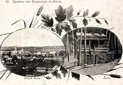 Волжский город Ставрополь основан в 1737 году по инициативе правительства Российской империи и лично императрицы Анны Иоанновны. Город-крепость на берегу реки Волги, по замыслу основателя Василия Татищева, должен защищать страну от набегов южных кочевых народов. Сюда также переселены калмыки, принявшие христианство. В 1739 году Указом Сената крепость названа Ставрополем, что на греческом означает «город священного Креста». Название крепости должно показывать её значение, как духовного центра для всех крещёных калмыков[2].
