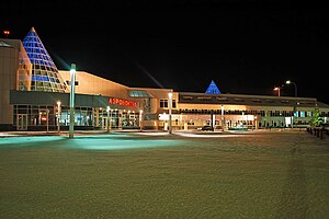 | По часовой стрелке, начиная с верхней фотографии: Аэропорт Ханты-Мансийск, Биатлонный центр Ханты-Мансийска, Парк им. Бориса Лосева, Театр Ханты-Мансийска, Панорамный вид Ханты-Мансийска | |||||||