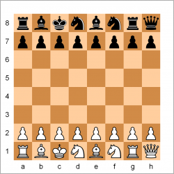 Ша́хматы (от сочетания персидского слова «шах» (король) и арабского слова «мат» (умер)[1]), это игра двух игроков (партнёров) за шахматной доской, один игрок играет белыми (светлой окраски) фигурами, а другой чёрными (чёрной окраски) фигурами. Шахматная доска имеет форму квадрата, разделённого на 64 клетки светлой и тёмной окраски. Шахматная игра ведётся шахматными фигурами, с каждой стороны имеется по 16 шахматных фигур (материальное равенство сторон). Это король, ферзь, два слона, два коня и восемь пешек. Цель шахматной игры поставить мат, захватить короля партнёра. Игра заключается в том, чтобы защитить своего короля и атаковать короля партнёра. Кто первый захватил короля, тот и победил.
