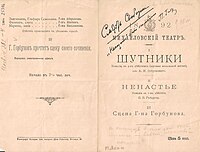 - ↑ Чайкина Татьяна Васильевна. «Шутники» А. Н. Островского как пьесакартина // открытая наука : журнал. — С. 62.