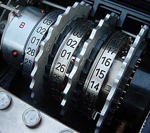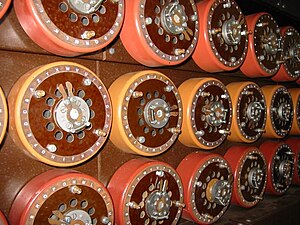 Помимо прочего, усложняло шифр использование набора из пяти различных дисков. Из них на машину одновременно устанавливалось только три. Поскольку тасовать их можно было в любом порядке, это создавало дополнительные десять вариантов установки[7].