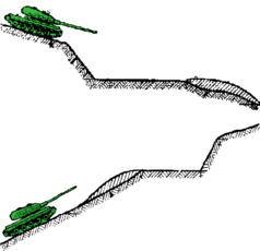 Изначально — крутой внутренний откос долговременного полевого укрепления. Противотанковое (противотранспортное) земляное заграждение в виде высокого и крутого среза ската возвышенности (берега реки), обращённого к противнику и имеющего крутизну от 15 до 45 градусов[6]. Искусственно построенное препятствие, обращённое к противнику и создающее почти отвесный крутой склон, отделённый рвом[7].
